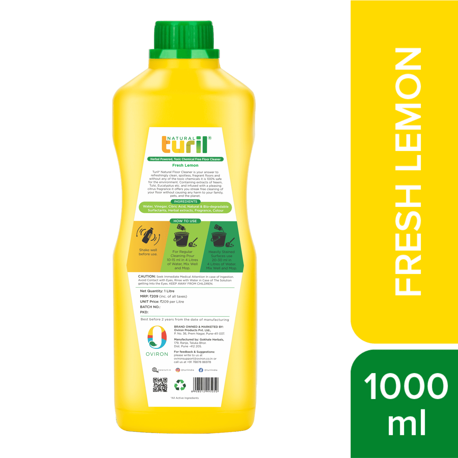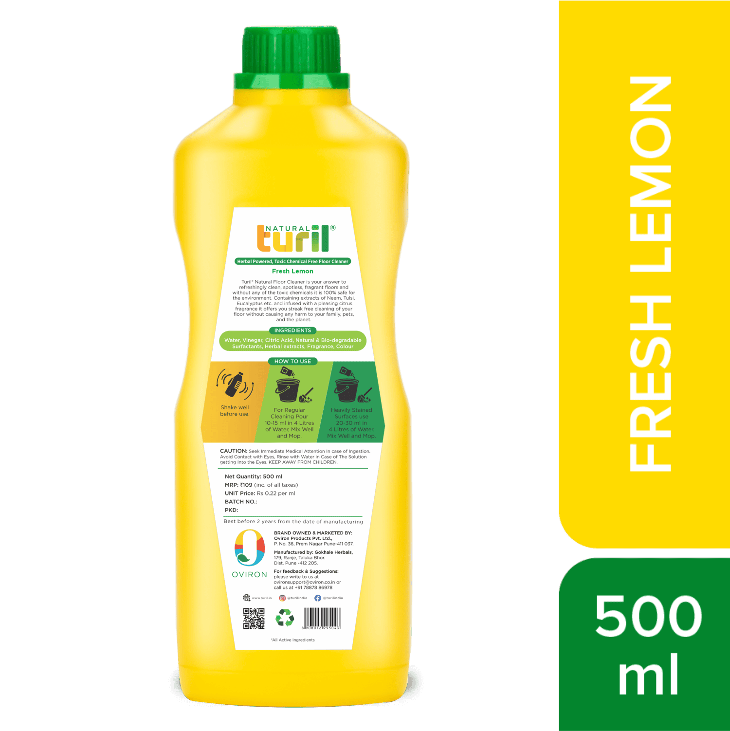 • Turil® Natural & Herbal Floor Cleaners ensure a clean, spotless, and fragrant floor while being 100% safe for the environment. Made from Neem, Tulsi, and Eucalyptus extracts, it provides streak-free cleaning with a pleasing fragrance. Most importantly, it’s safe for your family, pets, and the planet.